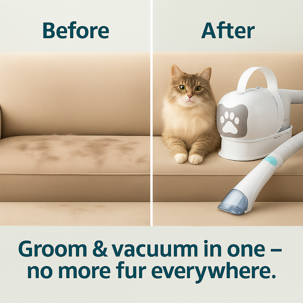 PawFectCare™ is a 7-in-1 premium grooming kit built to solve every pet owner’s biggest headache — shedding and mess. It trims, de-sheds, and vacuums loose hair straight into the container, all while keeping pets calm with its whisper-quiet motor. In short, it’s the stress-free way to groom your pets at home and keep your house fur-free.